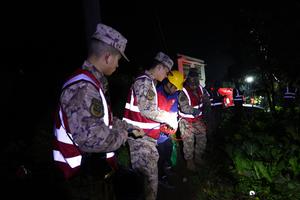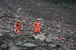 (250209) -- JUNLIAN, 9 febrero, 2025 (Xinhua) -- Rescatistas buscan personas desaparecidas, en el distrito de Junlian, en la ciudad...