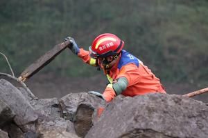 (250209) -- JUNLIAN, 9 febrero, 2025 (Xinhua) -- Un rescatista busca personas desaparecidas, en el distrito de Junlian, en la...