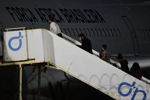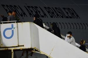 (250207) -- FORTALEZA, 7 febrero, 2025 (Xinhua) -- Brasileños deportados de Estados Unidos abordan un avión de la Fuerza Aérea...