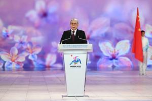 (250207) -- HARBIN, 7 febrero, 2025 (Xinhua) -- Timothy Fok Tsun-ting, vicepresidente del Consejo Olímpico de Asia, habla durante la...