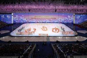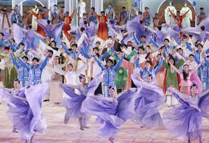 (250207) -- HARBIN, 7 febrero, 2025 (Xinhua) -- Artistas realizan una presentación durante la ceremonia de apertura de los IX...