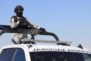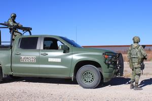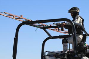 (250206) -- CIUDAD JUAREZ, 6 febrero, 2025 (Xinhua) -- Un elemento de la Guardia Nacional realiza un operativo conjunto con...