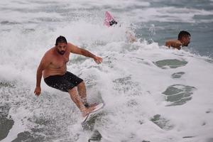 (250206) -- FORTALEZA, 6 febrero, 2025 (Xinhua) -- Un hombre surfea en la playa de Havaizinho, en Fortaleza, en el...