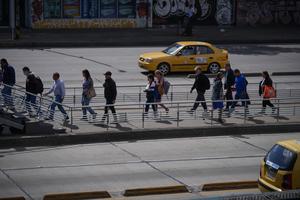 (250206) -- BOGOTA, 6 febrero, 2025 (Xinhua) -- Personas se dirigen a la entrada de una de las estaciones del...