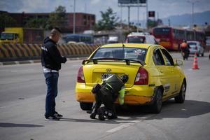 (250206) -- BOGOTA, 6 febrero, 2025 (Xinhua) -- Una agente de la policía de tránsito realiza una inspección a un...