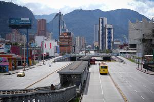 (250206) -- BOGOTA, 6 febrero, 2025 (Xinhua) -- Autobuses del transporte público circulan por una avenida durante una nueva jornada...