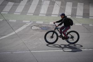 (250206) -- BOGOTA, 6 febrero, 2025 (Xinhua) -- Un hombre circula en bicicleta por una avenida durante una nueva jornada...