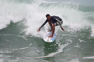 (250206) -- FORTALEZA, 6 febrero, 2025 (Xinhua) -- Un hombre surfea en la playa de Havaizinho, en Fortaleza, en el...