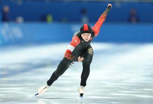 (250208) -- HARBIN, 8 febrero, 2025 (Xinhua) -- Zhang Xiaonan, de China, compite durante la final de la prueba de...