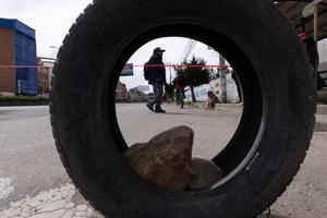 (250319) — EL ALTO, 19 marzo, 2025 (Xinhua) — Imagen del 19 de marzo de 2025 de un neumático bloqueando una calle durante un paro de labores de conductores de transporte urbano por el desabasto de combustible y el alza de la canasta familiar, en la ciudad de El Alto, Bolivia. (Xinhua/Javier Mamani) (jm) (ah) (vf)