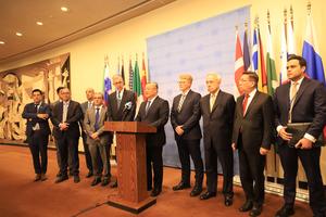 (250321) -- NACIONES UNIDAS, 21 marzo, 2025 (Xinhua) -- Fu Cong (c-frente), representante permanente de China ante las Naciones Unidas,...