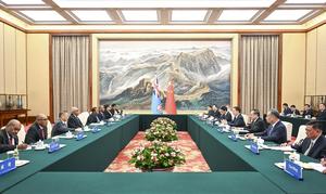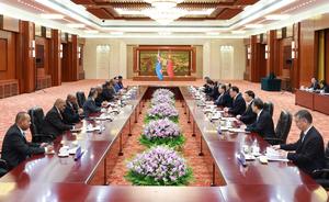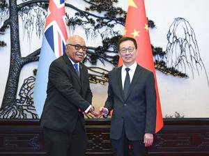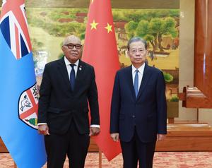 (250321) -- BEIJING, 21 marzo, 2025 (Xinhua) -- El vicepresidente chino, Han Zheng, se reúne con Filimone Jitoko, presidente del...