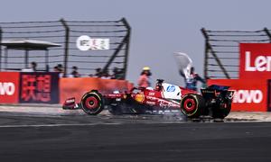 (250321) -- SHANGHAI, 21 marzo, 2025 (Xinhua) -- El piloto monegasco de la escudería Ferrari, Charles Leclerc, pierde el control...