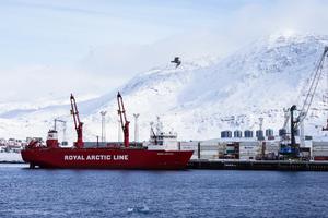 (250321) -- NUUK, 21 marzo, 2025 (Xinhua) -- Imagen del 20 de marzo de 2025 de un barco de carga...