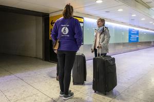 (250321) -- LONDRES, 21 marzo, 2025 (Xinhua) -- Una empleada intenta ayudar a pasajeros en el aeropuerto de Heathrow, en...