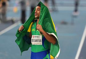 (250321) -- NANJING, 21 marzo, 2025 (Xinhua) -- Almir Dos Santos, de Brasil, reacciona al término de la final de...