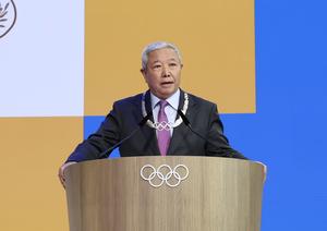 (250321) -- COSTA NAVARINO, 21 marzo, 2025 (Xinhua) -- Yu Zaiqing, vicepresidente del Comité Olímpico Chino y miembro del Comité...
