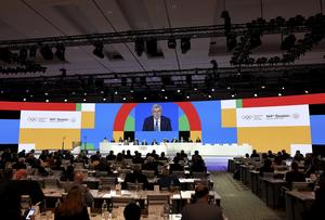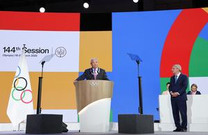 (250321) -- COSTA NAVARINO, 21 marzo, 2025 (Xinhua) -- El presidente del Comité Olímpico Internacional (COI), Thomas Bach, asiste a...