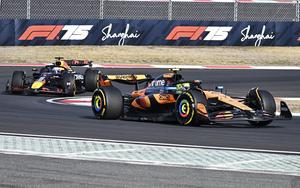 (250321) -- SHANGHAI, 21 marzo, 2025 (Xinhua) -- El piloto británico de la escudería McLaren, Lando Norris (d), y el...