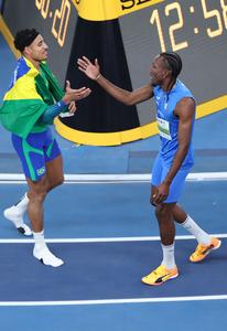(250321) -- NANJING, 21 marzo, 2025 (Xinhua) -- Andy Díaz Hernández (d), de Italia, saluda a Almir Dos Santos, de...