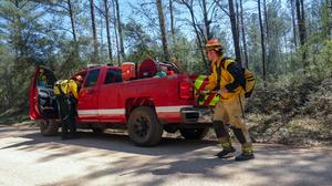 (250321) -- HOUSTON, 21 marzo, 2025 (Xinhua) -- Imagen del 20 de marzo de 2025 de bomberos preparándose para dirigirse...