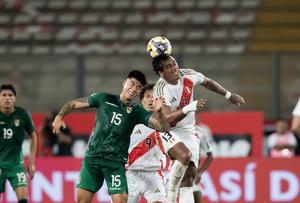 (250321) -- LIMA, 21 marzo, 2025 (Xinhua) -- Imagen del 20 de marzo de 2025 de Miguel Trauco (i), de...
