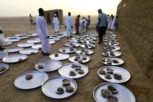 (250321) -- DONGOLA, 21 marzo, 2025 (Xinhua) -- Imagen del 20 de marzo de 2025 de alimentos preparados para el...