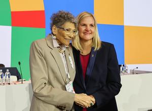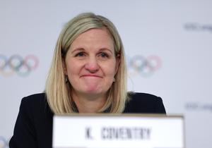 (250321) -- COSTA NAVARINO, 21 marzo, 2025 (Xinhua) -- Imagen del 20 de marzo de 2025 de Kirsty Coventry (d),...