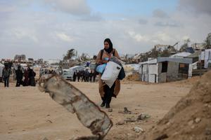 (250321) -- CIUDAD DE GAZA, 21 marzo, 2025 (Xinhua) -- Imagen del 20 de marzo de 2025 de una mujer...