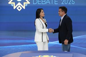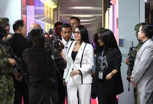 (250323) -- QUITO, 23 marzo, 2025 (Xinhua) -- La candidata a la Presidencia de Ecuador, Luisa González, por el movimiento...