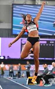 (250323) -- NANJING, 23 marzo, 2025 (Xinhua) -- Tyra Gittens, de Trinidad y Tobago, compite durante la final de salto...