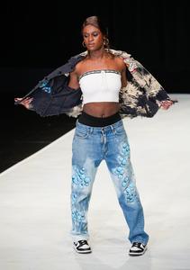 (250323) -- VANCOUVER, 23 marzo, 2025 (Xinhua) -- Imagen del 22 de marzo de 2025 de una modelo presentando una...