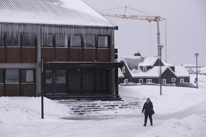 (250325) -- NUUK, 25 marzo, 2025 (Xinhua) -- Imagen del 24 de marzo de 2025 de una persona caminando frente...