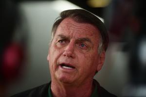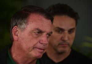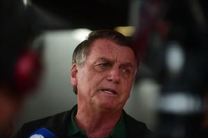 (250325) -- BRASILIA, 25 marzo, 2025 (Xinhua) -- El expresidente brasileño, Jair Bolsonaro, habla con representantes de los medios de...