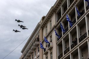 (250325) -- ATENAS, 25 marzo, 2025 (Xinhua) -- Aviones de combate vuelan durante un desfile militar en conmemoración del Día...