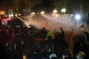 (250325) -- ANKARA, 25 marzo, 2025 (Xinhua) -- Imagen del 23 de marzo de 2025 de manifestantes participando en una...