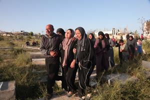 (250325) -- GAZA, 25 marzo, 2025 (Xinhua) -- Imagen del 24 de marzo de 2025 de familiares llorando durante el...