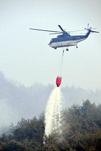 (250326) -- SEUL, 26 marzo, 2025 (Xinhua) -- Un helicóptero apaga un incendio cerca del distrito de Hadong, en la...