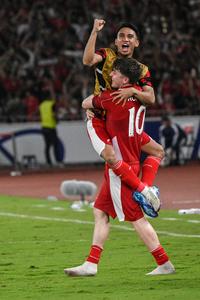(250326) -- YAKARTA, 26 marzo, 2025 (Xinhua) -- Imagen del 25 de marzo de 2025 de Rizky Ridho Ramadhani (i),...
