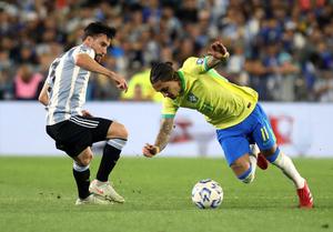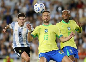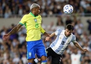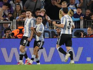 (250326) -- BUENOS AIRES, 26 marzo, 2025 (Xinhua) -- Imagen del 25 de marzo de 2025 de Julián Alvarez (i),...