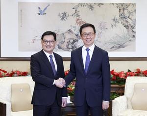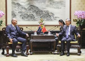 (250326) -- BEIJING, 26 marzo, 2025 (Xinhua) -- El vicepresidente chino, Han Zheng, se reúne con el vice primer ministro...