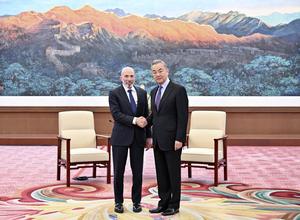 (250326) -- BEIJING, 26 marzo, 2025 (Xinhua) -- El ministro de Relaciones Exteriores chino, Wang Yi, también miembro del Buró...