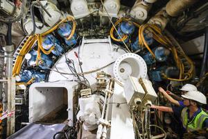 (250326) -- SHANTOU, 26 marzo, 2025 (Xinhua) -- La tuneladora de escudo "Yongping" con un diámetro de excavación de 14,57...