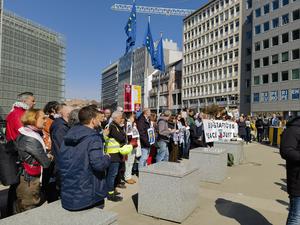 (250327) -- BRUSELAS, 27 marzo, 2025 (Xinhua) -- Un grupo de trabajadores de la Unión Europea se reúnen para una...