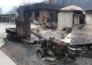 (250327) -- GYEONGSANG, 27 marzo, 2025 (Xinhua) -- Imagen del 27 de marzo de 2025 de una vivienda residencial destruida...