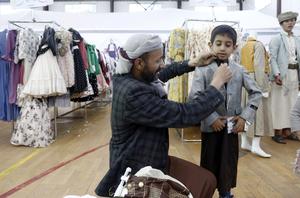 (250328) -- SANA, 28 marzo, 2025 (Xinhua) -- Imagen del 19 de marzo de 2025 de un padre ayudando a...