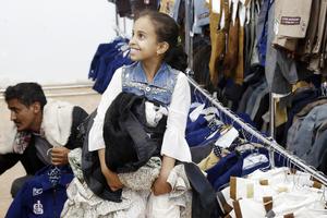 (250328) -- SANA, 28 marzo, 2025 (Xinhua) -- Imagen del 19 de marzo de 2025 de una niña cargando ropa...