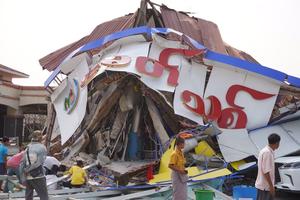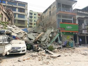 (250328) -- NAY PYI TAW, 28 marzo, 2025 (Xinhua) -- Imagen del 28 de marzo de 2025 de un edificio...