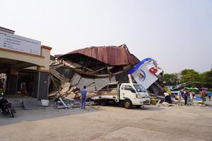 (250328) -- KUNMING, 28 marzo, 2025 (Xinhua) -- Imagen del 28 de marzo de 2025 del daño causado por un...