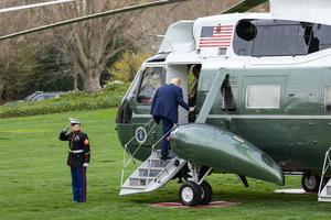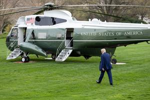 (250328) -- WASHINGTON, 28 marzo, 2025 (Xinhua) -- El presidente estadounidense, Donald Trump, aborda el Marine One en la Casa...